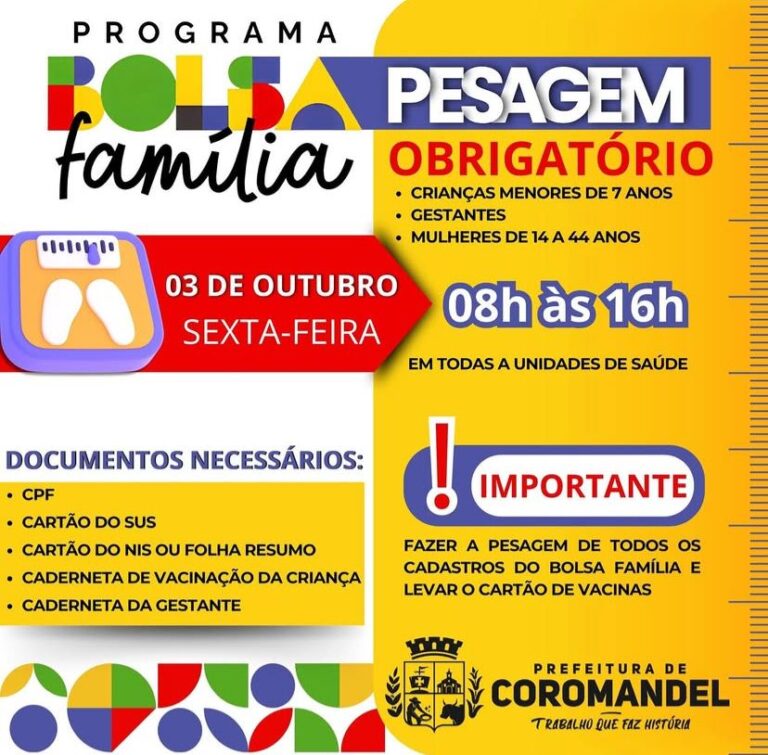Coromandel UBSs de Coromandel realizam pesagem obrigatória do Bolsa Família nesta sexta-feira amandapasseado 5 meses ago