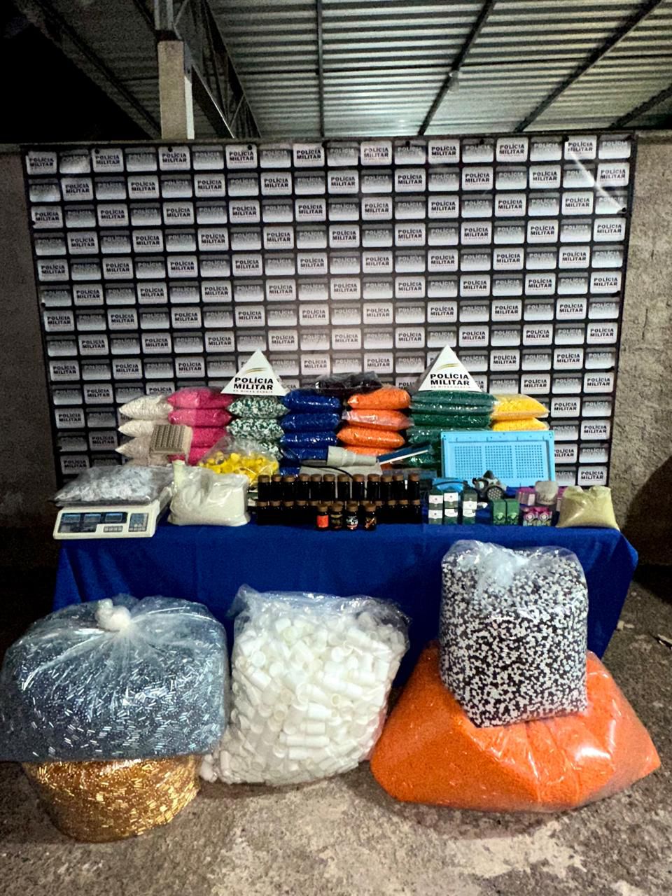No imóvel alvo da ação, os militares encontraram grande quantidade de cápsulas, frascos e rótulos falsificados, além de equipamentos industriais utilizados na manipulação e embalagem dos produtos, como encapsuladora, balanças de precisão, máquina seladora e contador de cápsulas. Também foram localizados frascos prontos para comercialização contendo colágeno, emagrecedores e analgésicos, além de cerca de quatro quilos de matéria-prima.