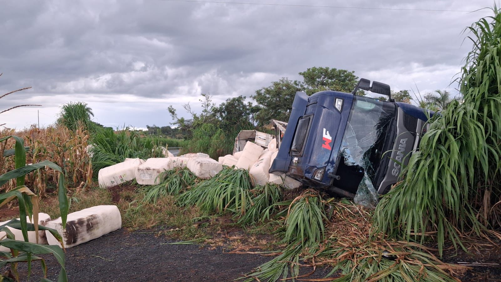 De acordo com a Polícia Militar Rodoviária, o homem conduzia uma combinação veicular carregada com algodão quando o veículo tombou às margens da rodovia. Parte da carga acabou espalhada pela pista.