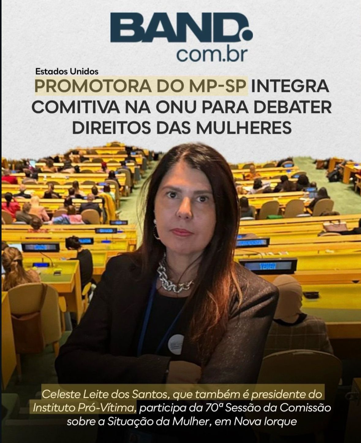 A promotora de Justiça do Ministério Público de São Paulo (MP-SP), Celeste Leite dos Santos, integra a comitiva brasileira na 70ª Sessão da Comissão sobre a Situação da Mulher, na sede da Organização das Nações Unidas (ONU), em Nova Iorque.