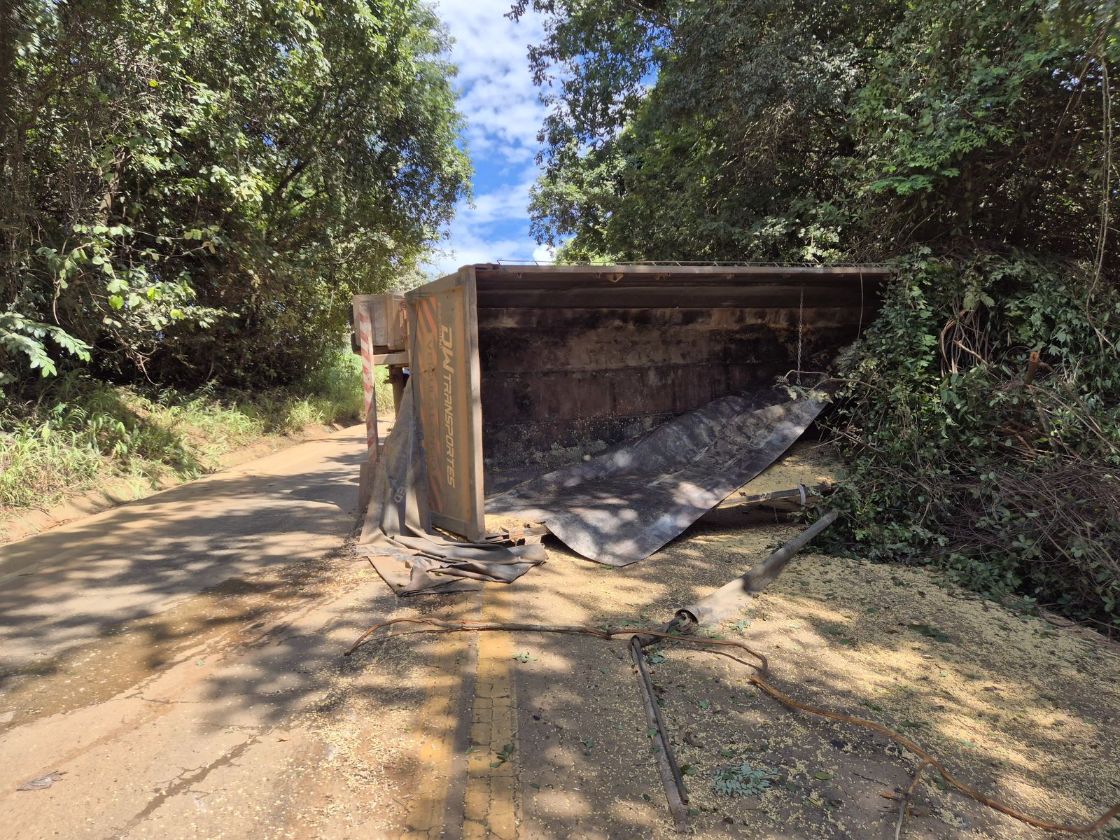 Com o tombamento, o último semirreboque e o penúltimo reboque da carreta ficaram sobre a pista. Parte das 49 toneladas de soja transportadas se espalhou pela rodovia, prejudicando o fluxo de veículos.