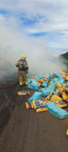 Foto: Divulgação Uma carreta que transportava ração para animais pegou fogo após tombar na manhã desta terça-feira (13), na BR-364, próximo ao trevo de acesso ao município de Gurinhatã, no Triângulo Mineiro. O Corpo de Bombeiros foi acionado por volta das 9h20 para atender à ocorrência. Equipes do 2º Pelotão de Bombeiros de Ituiutaba encontraram…